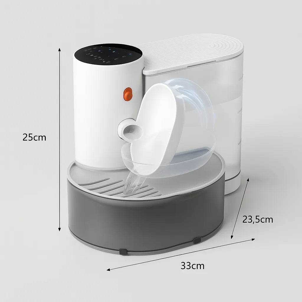 Esse produto é um bebedouro premium que oferece ao seu pet uma experiência de hidratação higiênica, segura e constante. Com sistema de troca automática de água, bateria de longa duração e design sofisticado, ele é a escolha ideal para tutores que se importam de verdade.