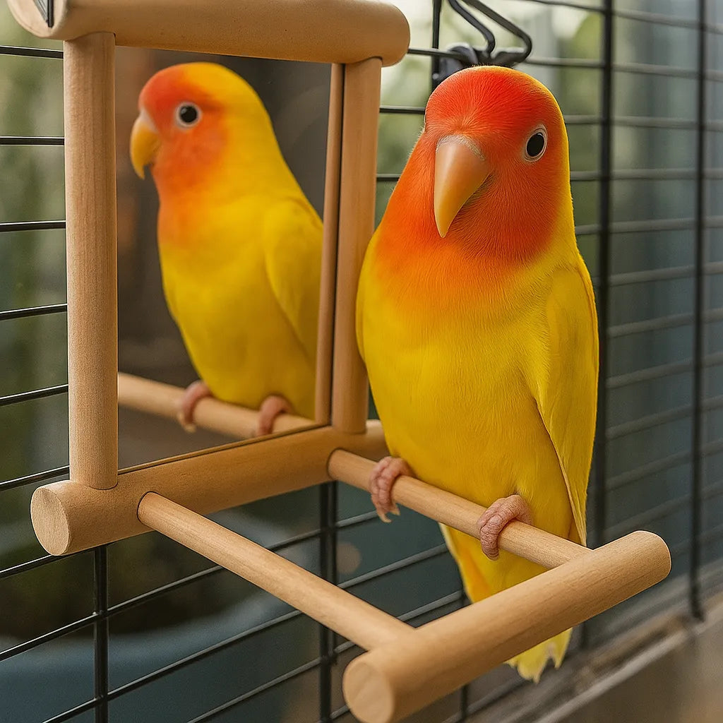 Ofereça estímulo mental, diversão e conforto — um acessório 3 em 1 que combina espelho, balanço e poleiro de madeira natural para enriquecer o dia do seu pássaro.